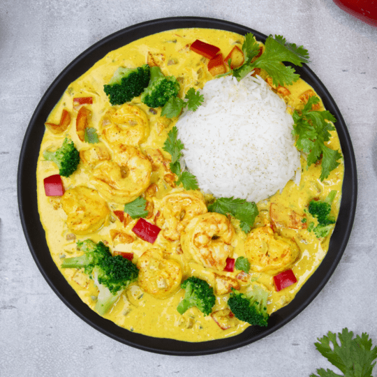 Curry de chou fleur et lentilles corail au lait de coco, riz basmati